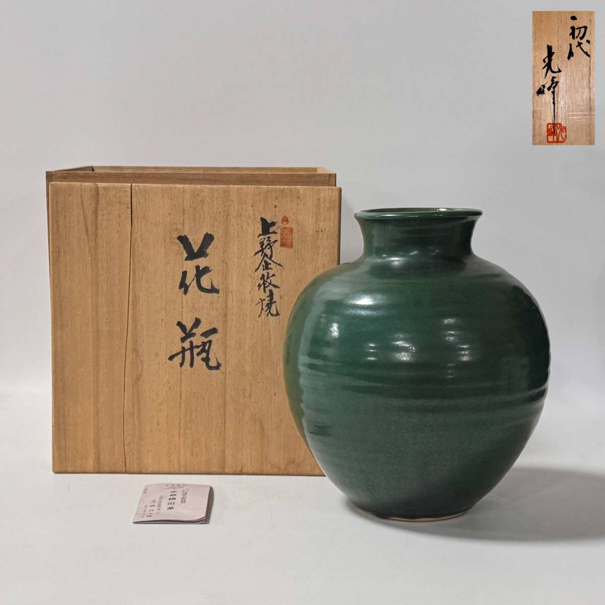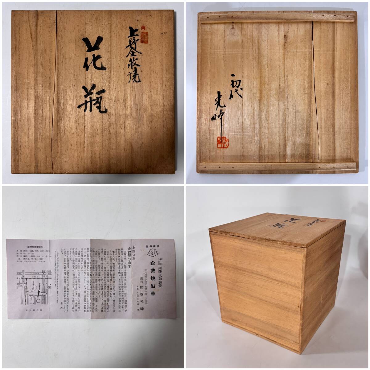上野企救焼 初代 光峰 細川・小笠原両藩主御庭焼 花瓶 栞 花器 花入 花生 華道具 茶道具 経年保管品 現状品の出品です。