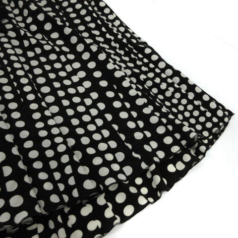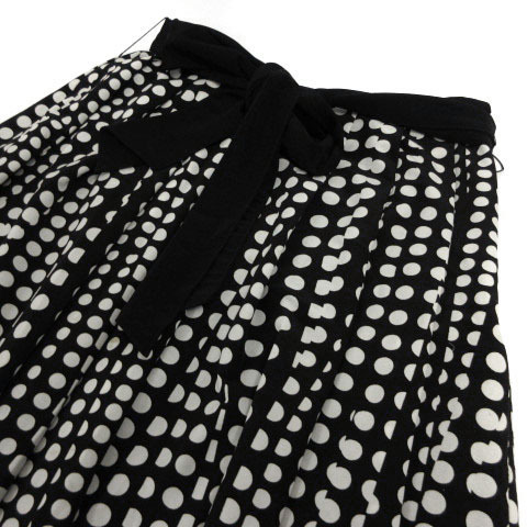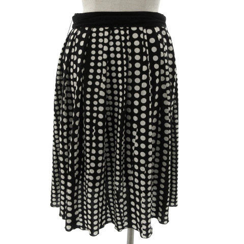 インディヴィ INDIVI スカート プリーツ フレア ひざ丈 リボンベルト ドット ブラック 黒 ホワイト 白 38 レディース
