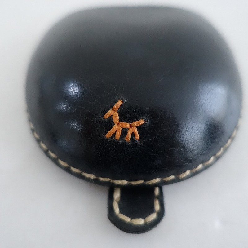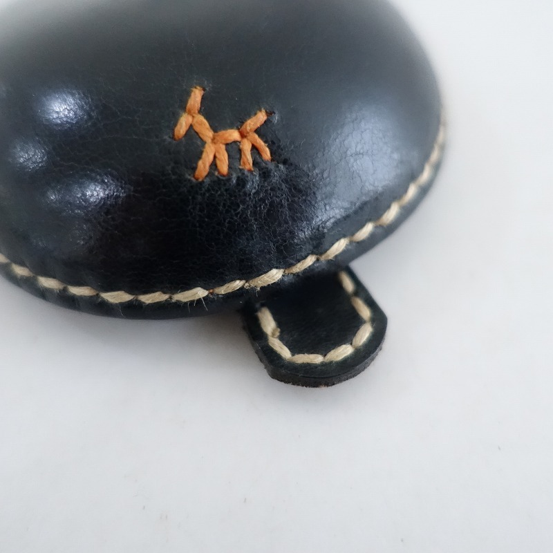 | HENRY CUIRのコインケースです。カラーはブラックで、レザー素材です。蓋を開けると小銭を収納できます。ころんとした丸みのあるフォルムで、中央下に動物の刺繍とレザーのフチにステッチが施されたデザインです。 |