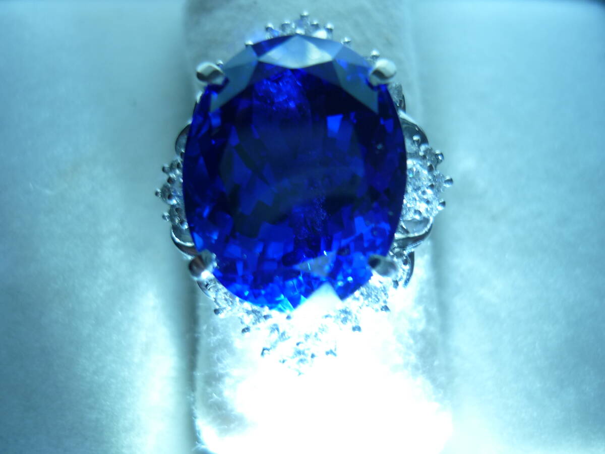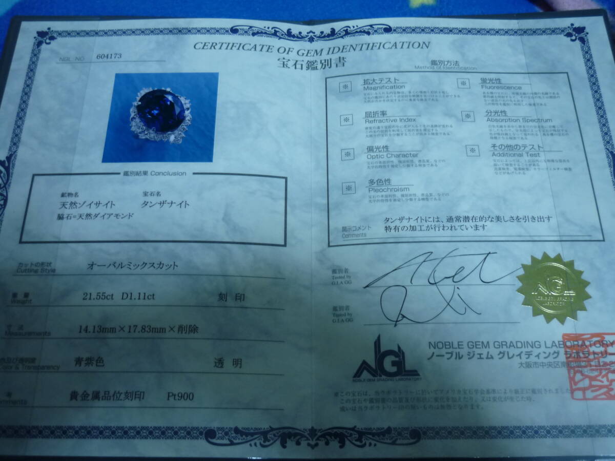 天然ゾイサイト タンザナイト オーバルミックスカット 21.55ct D1.11ct Pt900 鑑別書付き 。
