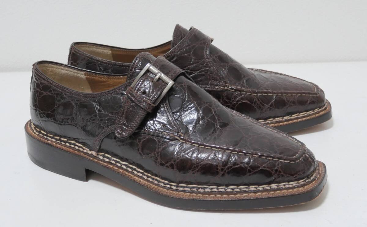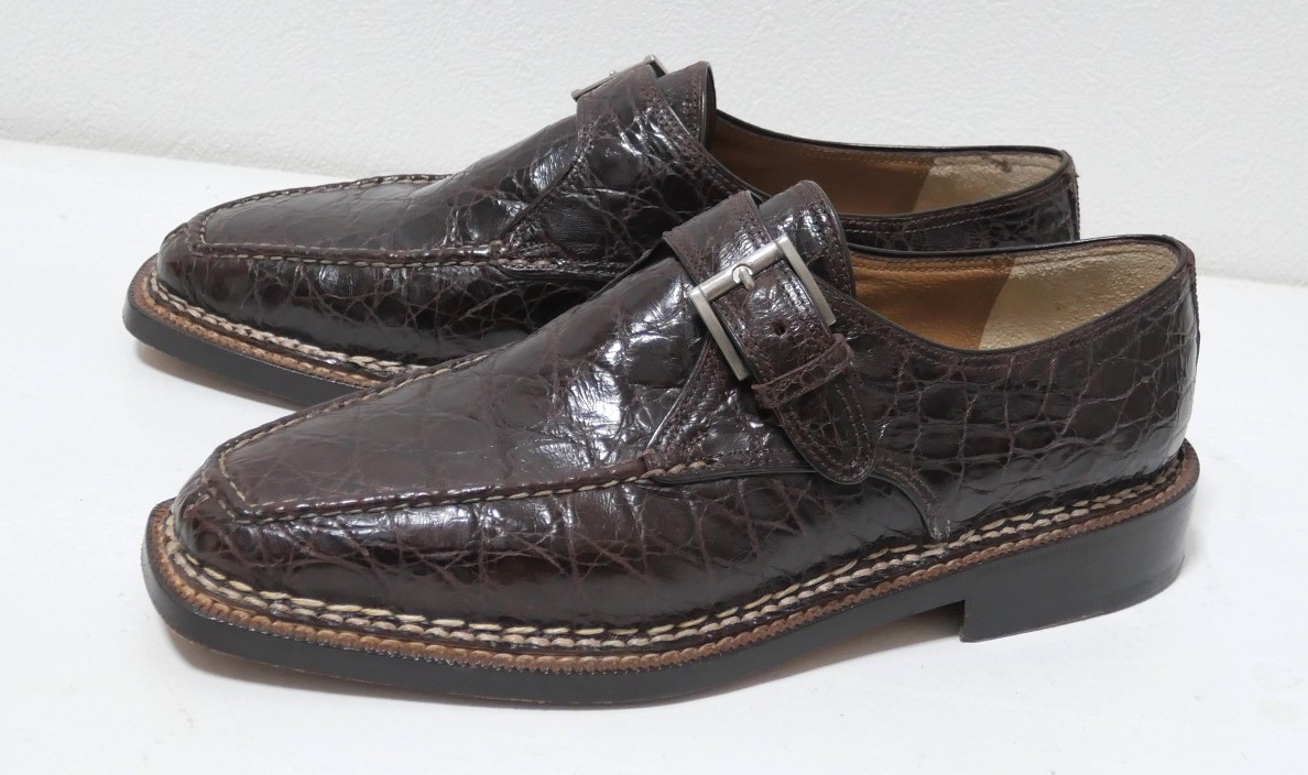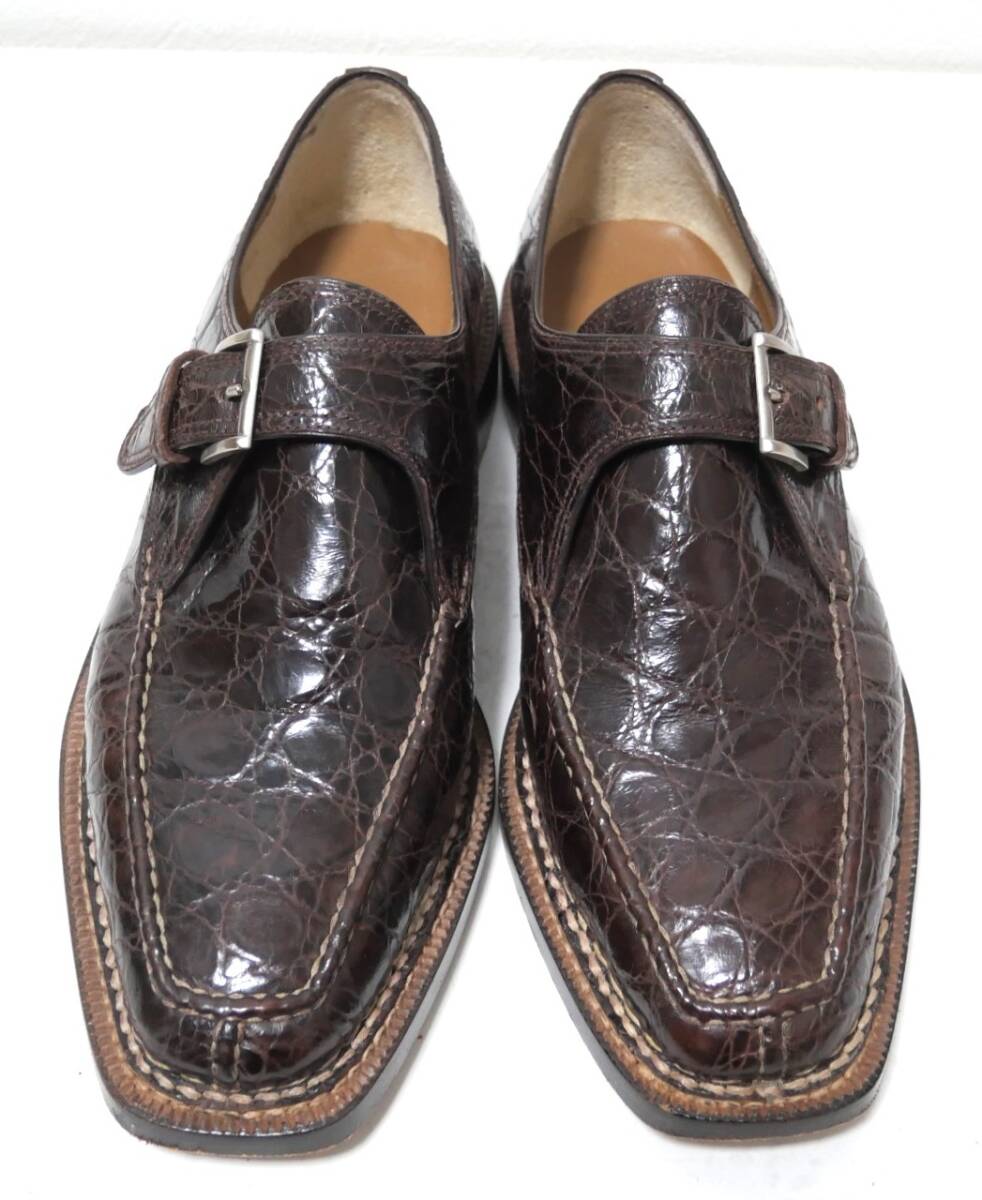 (商品名)イタリア製 ストールマンテラッシ モンクストラップ クロコダイル レザーシューズ