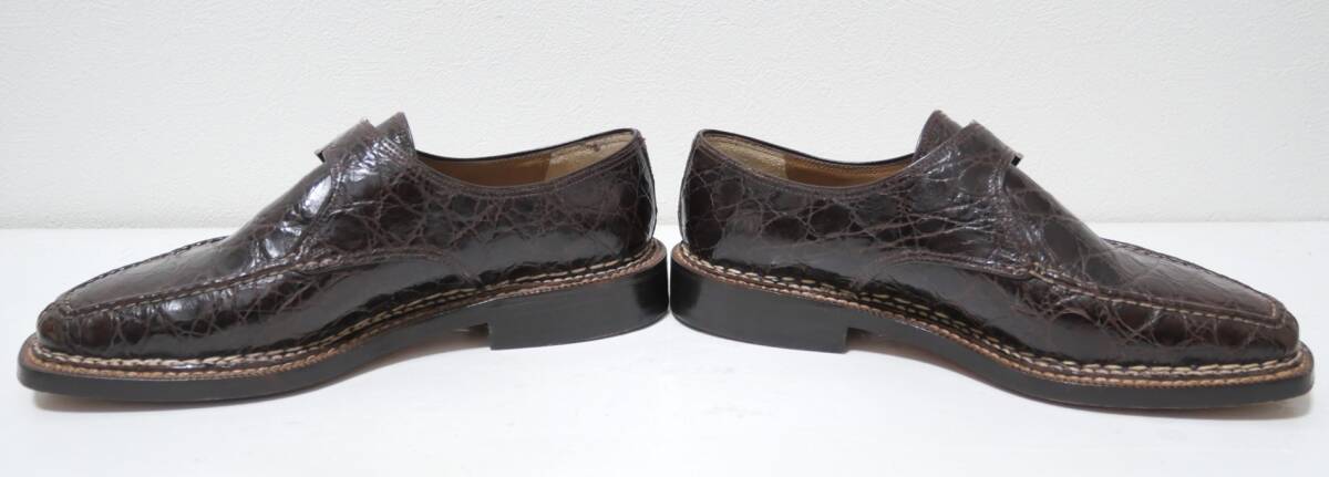 イタリア製 ストールマンテラッシ モンクストラップ クロコダイル レザーシューズ ダークブラウン ノルベジェーゼ製法 Sutor Mantellassi