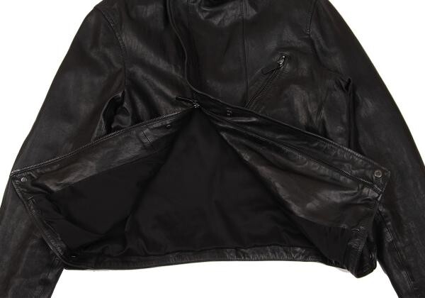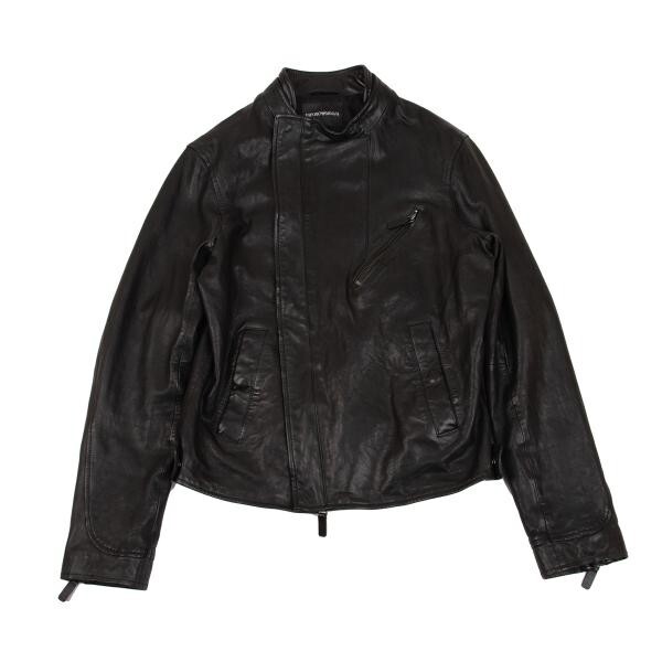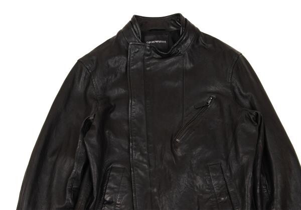 | エンポリオアルマーニEMPORIO ARMANI シープレザーライダースジャケット 黒48 |