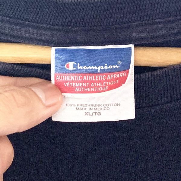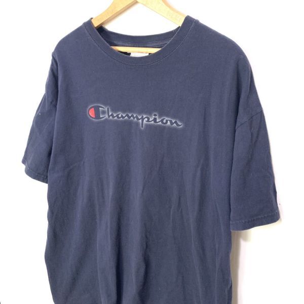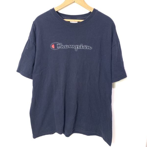 ■ 大きめサイズ Champion チャンピオン ロゴ プリント Tシャツ ネイビー サイズXL 古着 アメカジ スポーツ ■