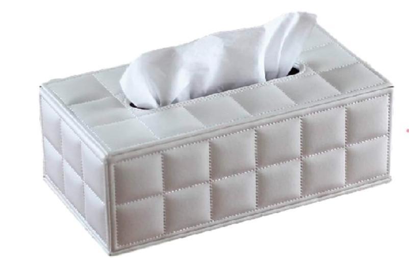 新品◆ ティッシュボックス ケース◆ ティッシュボックス カバー ◆本革調 ◆高級感  おしゃれ 白・ホワイト 格子柄 キルティング