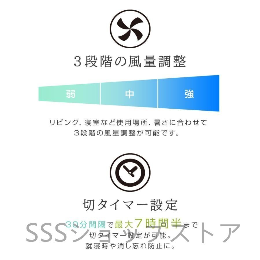 3段階の風量調整が可能で、切タイマー設定が可能で就寝時の利用や消し忘れ予防も可能となります。