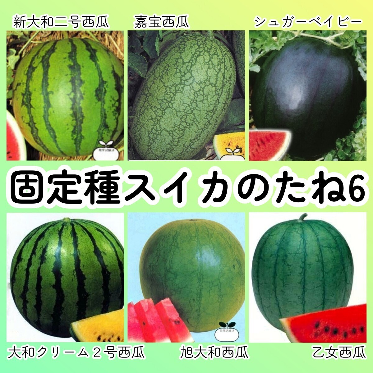 固定種スイカ種6◆新大和二号西瓜+嘉宝西瓜+シュガーベイビー+大和クリーム2号西瓜+旭大和西瓜+極早生乙女西瓜 すいか