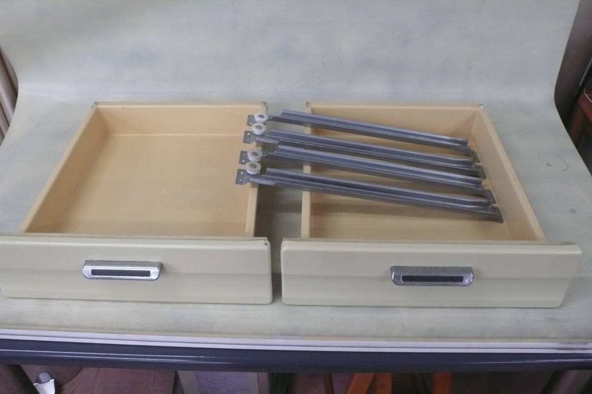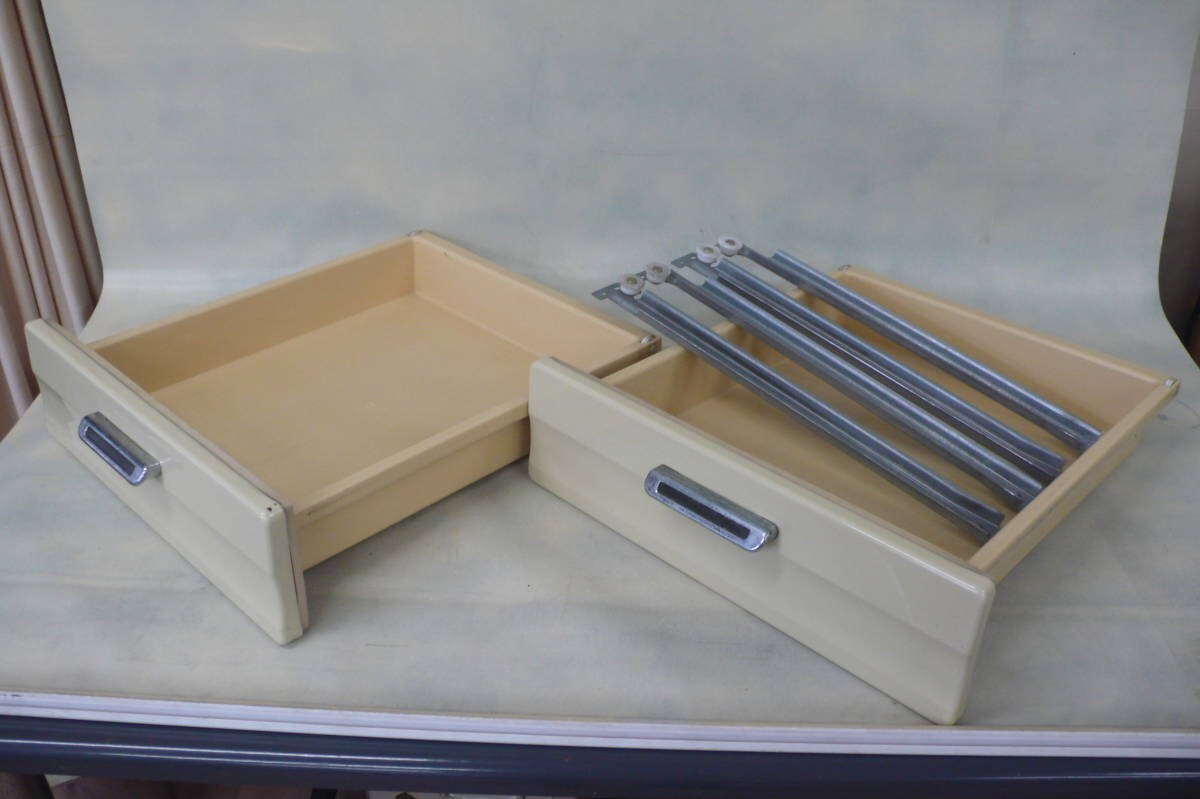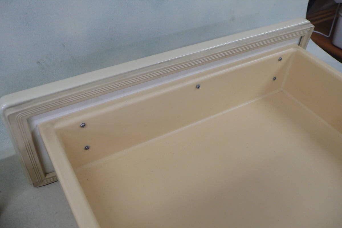 ★システムキッチンから取り外したものとなります★ ☆レールをビス留めすれば簡単に引き出しの完成です☆ ★落ち着いたアイボリー色★ ☆DIYにいかがでしょうか?☆ ・材質 正面:スチール(磁石がくっつきます) 内側:プラスチック レール:スチール ・サイズ約 全幅445(内側のプラスチック部分の全幅は388) 奥行(取っ手除く)480 全高125 ※素人採寸のため誤差はご了承ください※ ・小傷等の使用感ございますが大きなダメージなく使用には問題ありません。 ・現状出品となります(NCNR) ・画像にあるもの/状態で全てとなります。 ※モニターにより画像の色合いは現品と若干異なる場合がございます※ ※ノークレーム/ノーキャンセルを条件でお願いします※ ※梱包材料は「リサイクル材」を利用致します。 ※【記載送料をご負担ください】 ※同梱についてはご相談ください※ -------------------------------------------- この他にも趣味から実用品まで豊富に出品しております。 ---------------------------------------------- | ||