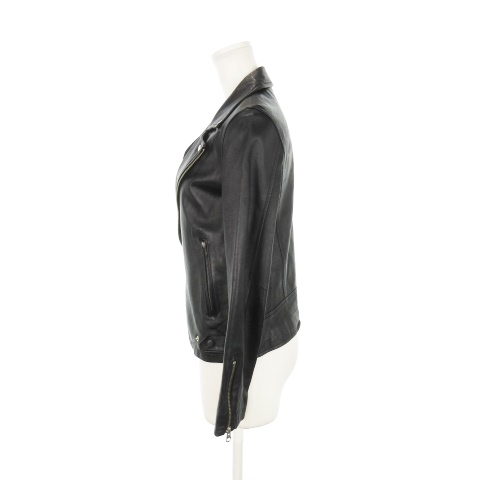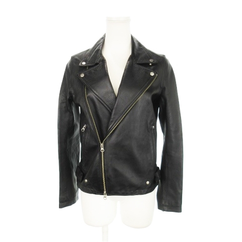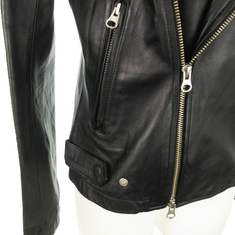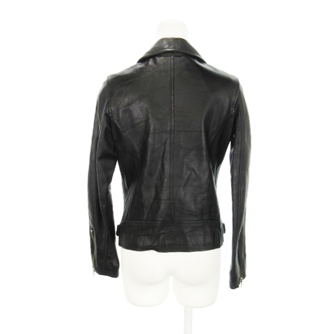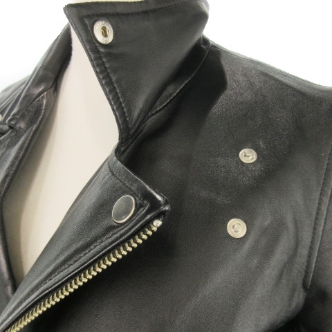 ジーンズファクトリー JEANS FACTORY ライダース ジャケット ダブル ラムレザー 本革 羊革 38 M 黒 ブラック /AH8 ■GY01 レディース