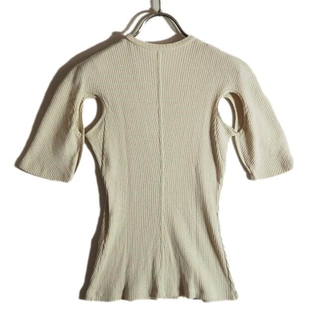 P8082f69 ▼mame kurogouchi マメクロゴウチ▼ 22SS Crew Neck Ribbed Jersey Top リブカットソー ベージュ 1 / MM22SS-JS027 春夏