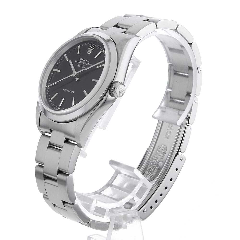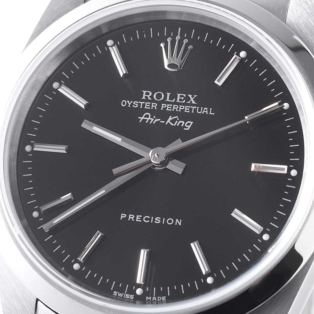 モデル情報 | エアキング Ref.14000です。デイト付きのモデルが多い中で、このエアキングのシンプルなディテールは希少です。シンプルなデザインゆえに、時と場所・服装を選ばず、あらゆる場面で活躍できることや飽きずに愛用できることから、廃番となった今でも根強い人気を誇ります。 |