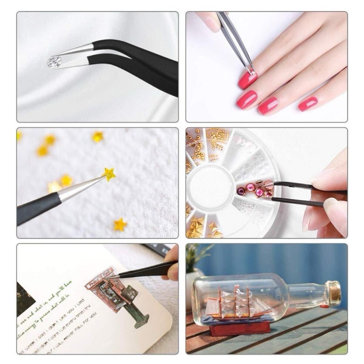 ラインストーンやつけまつ毛のような、細かな作業に不可欠な万能ピンセットです。
