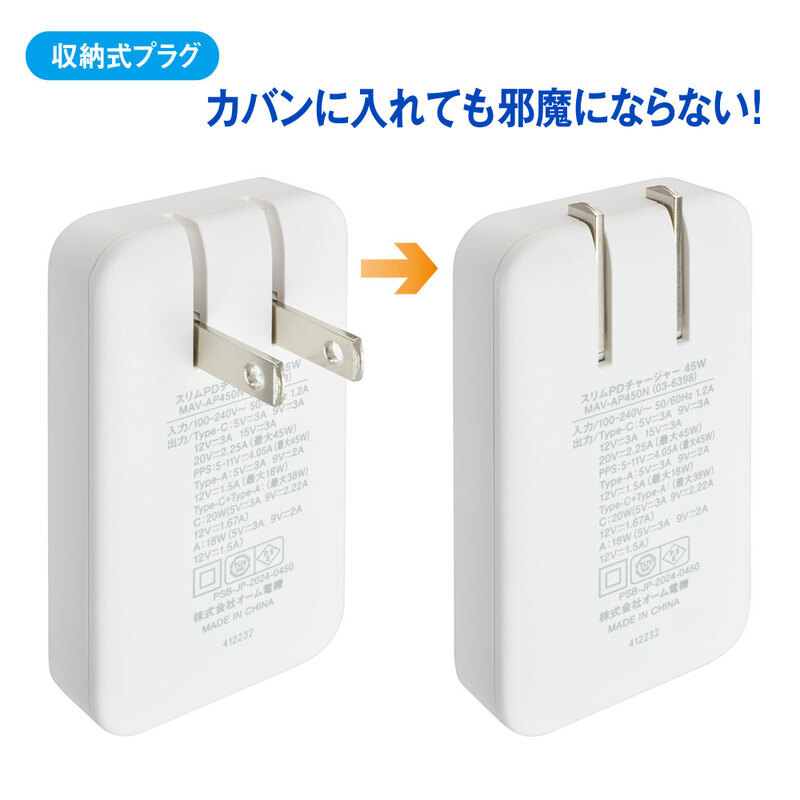 ● 最大出力45W・Power Delivery3.0(PPS)対応USB-C