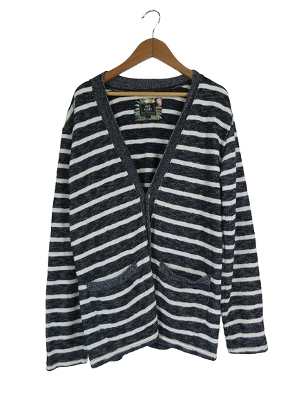 ビームスハート BEAMS HEART カーディガン ボタン ボーダー サイズM ネイビー 白 QQQ メンズ