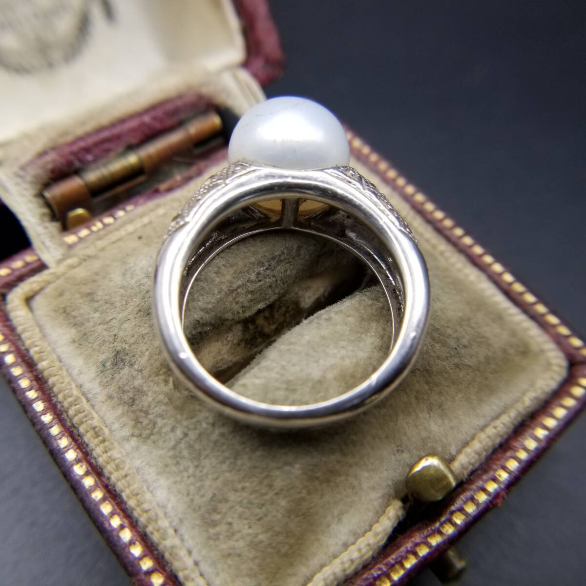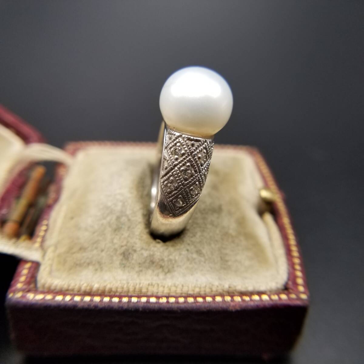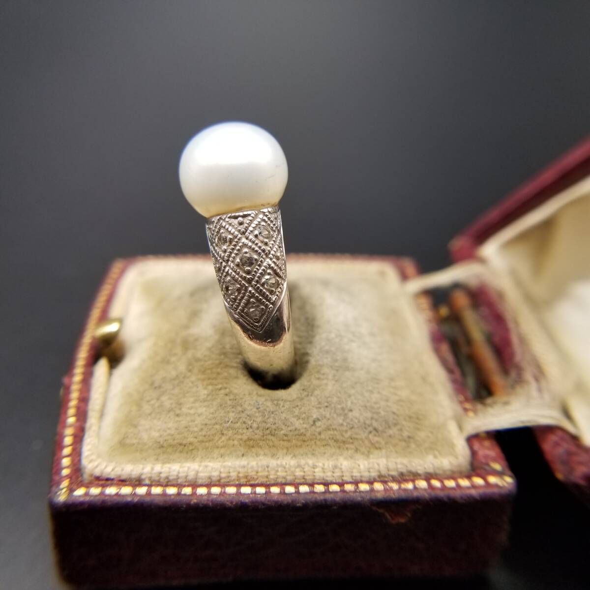 IPS パール装飾 クリアストーン ダイヤカット 925 シルバー ヴィンテージ リング 銀 指輪 クラシック 上品 エレガント 存在感 R15-B