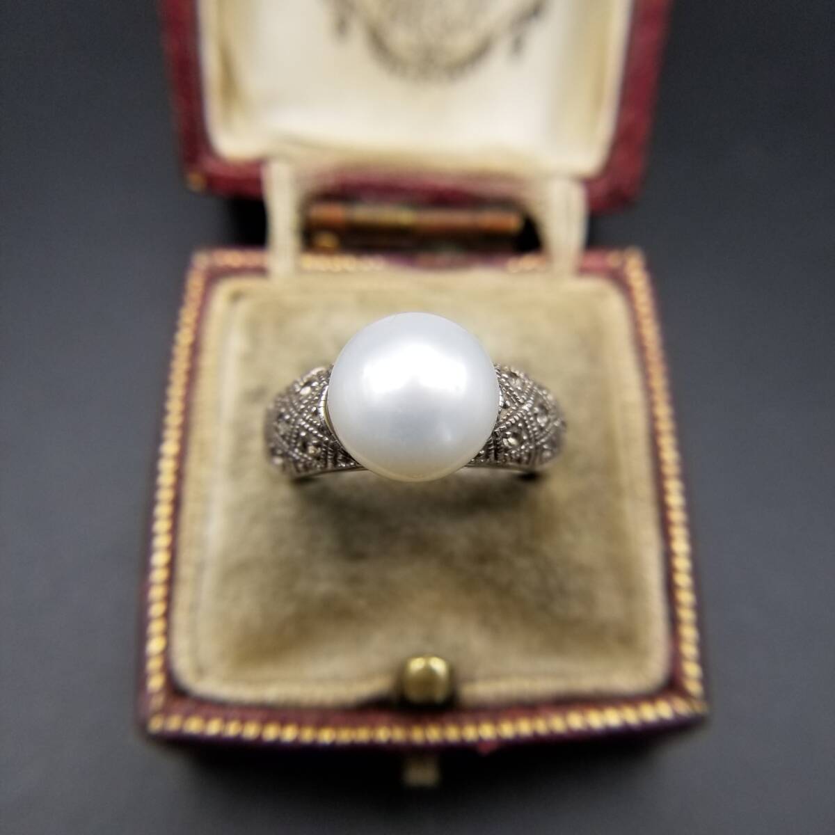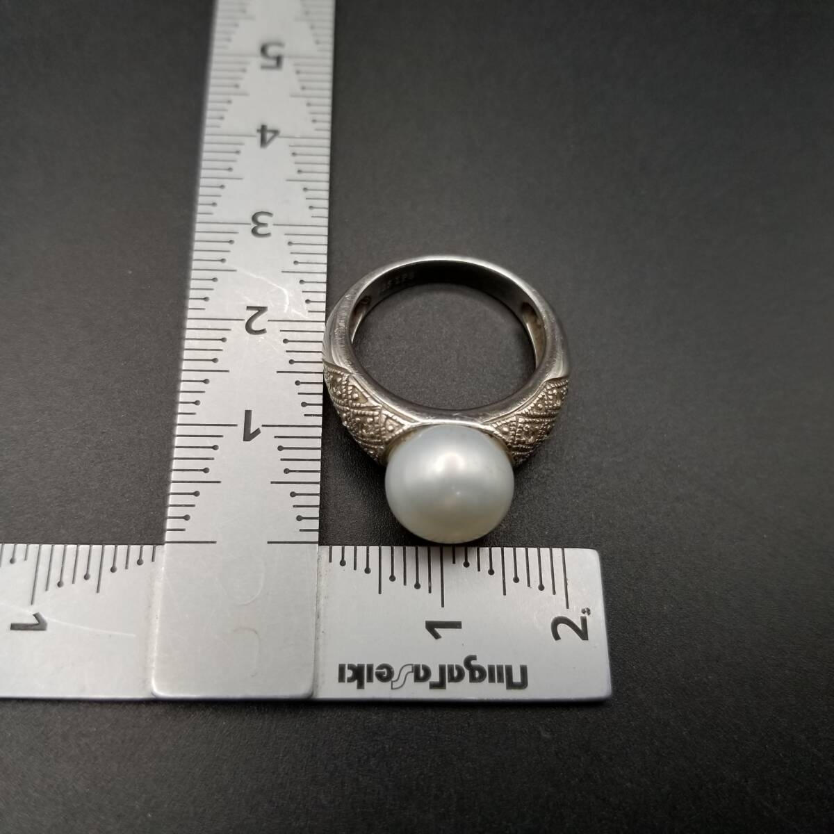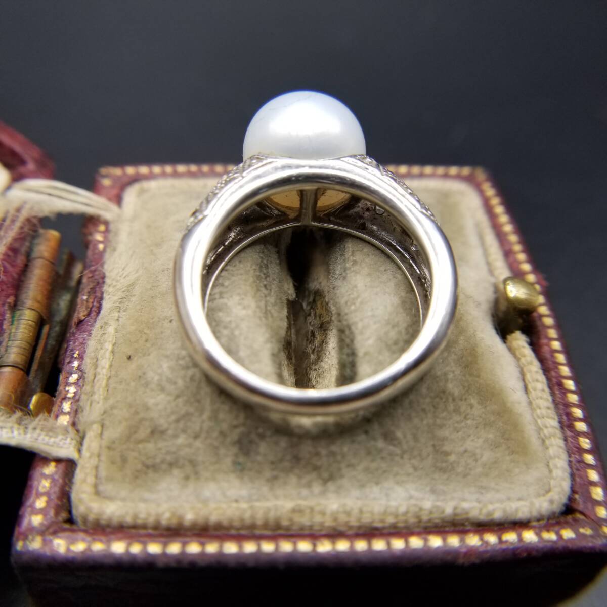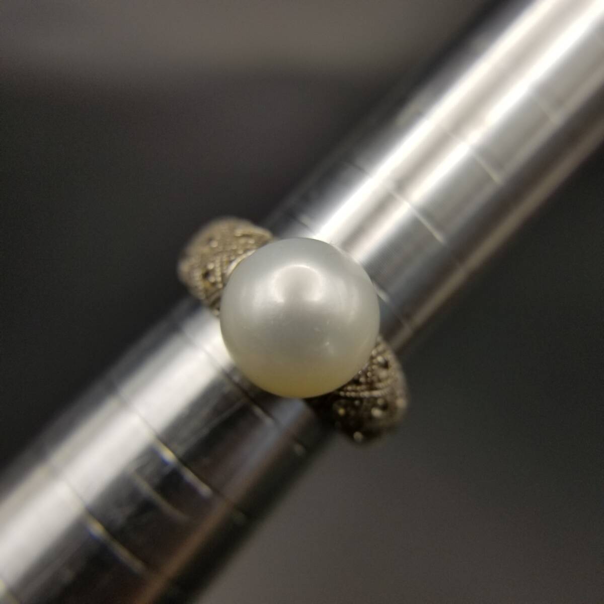 IPS パール装飾 クリアストーン ダイヤカット 925 シルバー ヴィンテージ リング 銀 指輪 クラシック 上品 エレガント 存在感 R15-B