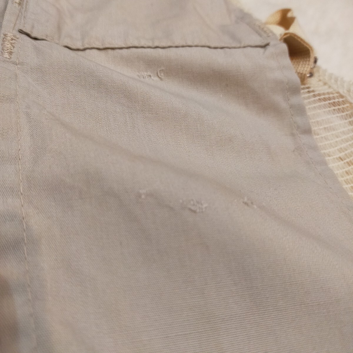 やや使用感があり、一部に薄い汚れ、小さなダメージ、ボタンの交換箇所が見られます。