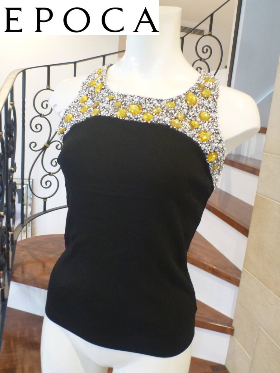 4万 超美品 EPOCA エポカ★黒 ブラック ビジュー ノースリーブセーター 40 M相当