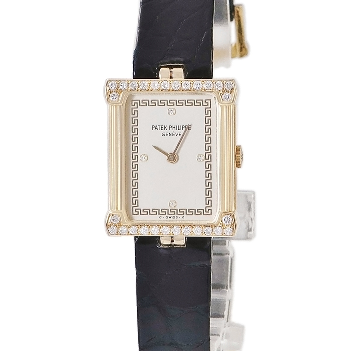 | パテックフィリップ PATEK PHILIPPE グリーク 4632 K18YG無垢 純正ダイヤ シルバー スクエア レディース 腕時計 手巻き シルバー 中古 店頭受取不可 | |