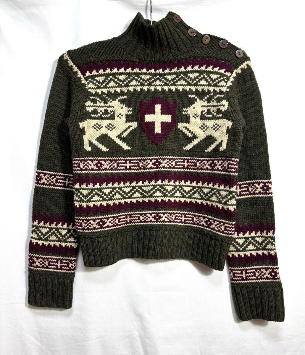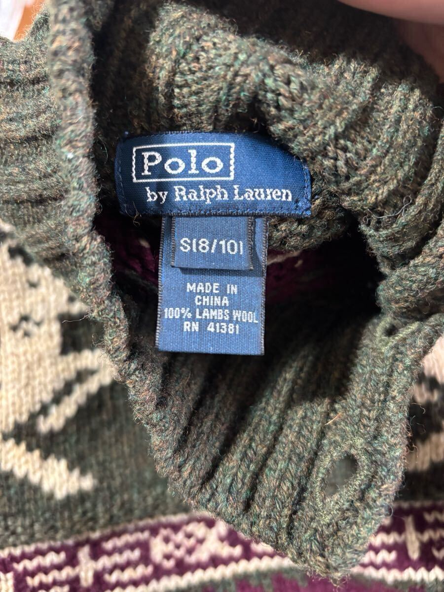 ■ 子供用 90s ビンテージ Polo by RALPH LAUREN ラルフローレン ノルディック柄 ウール ニット セーター サイズS オリーブ アメカジ ■