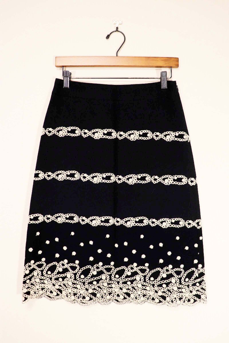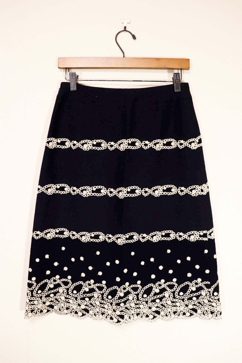 ☆美品☆mina perhonenミナペルホネン/パネル刺繍shellyスカート:38/黒系xz073