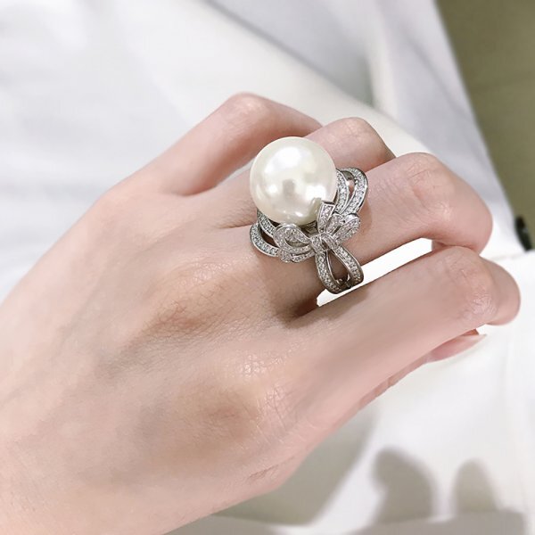 本物のシルバー100% リング、16mm淡水パール、高炭素ダイヤモンド、お祝いジュエリー、925コレクション