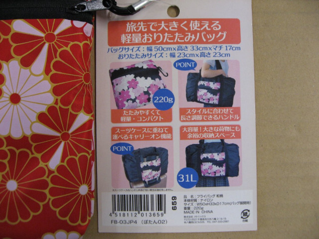 メトリックス フライバッグ和柄ぼたん赤 FB03JP4 旅行 トラベル スーツケース関連品