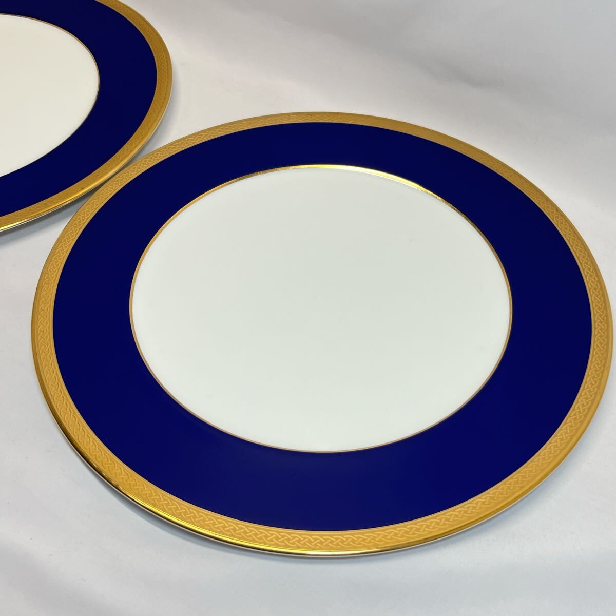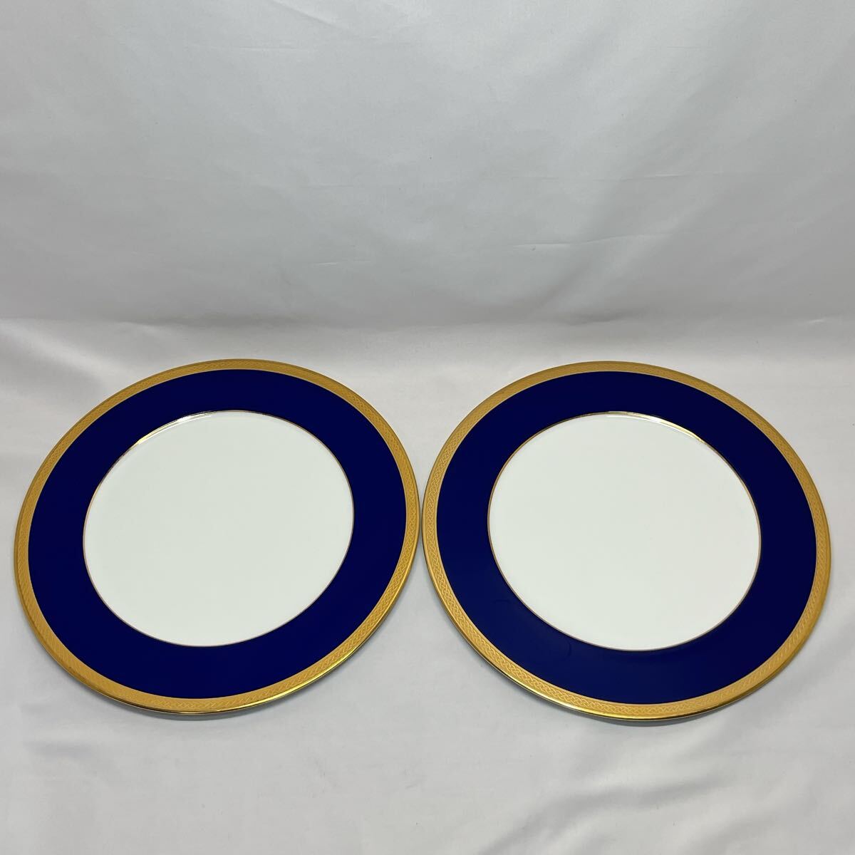 上品なネイビーブルーとゴールドの縁取りが美しい、Noritake(ノリタケ)のボーンチャイナプレート2枚セットです。