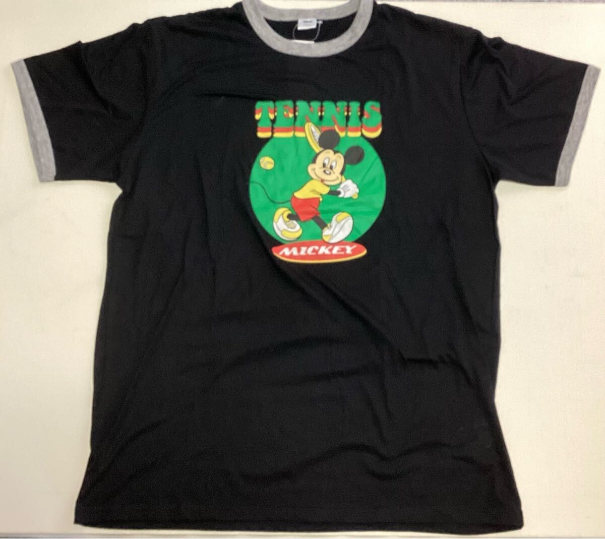DISNEY◎●ディズニー◎ミッキーマウス(Mickey Mouse)◎リンガーTシャツ◎テニス TENNIS◎XLサイズ◎長期保管未着用◎黒◎タグ付き