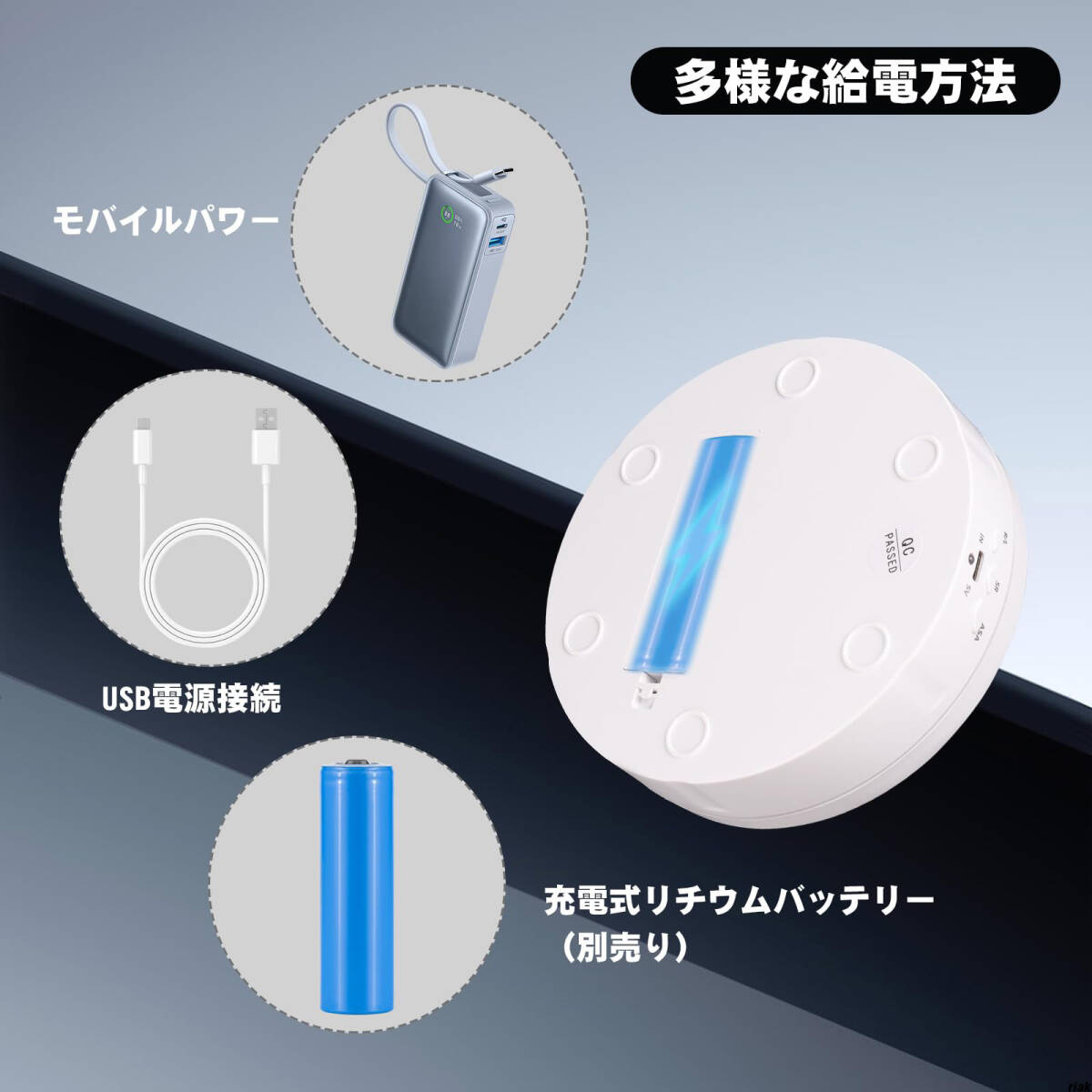 電源: USBケーブル(付属)または18650電池(別売)で駆動