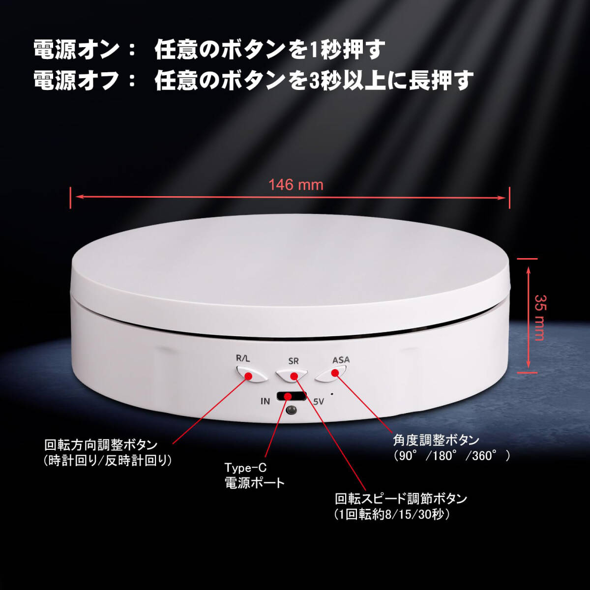 【高品質ABS素材で作られており、省エネかつ低ノイズ】360度回転台 スピード調整可能 フィギュア 直径14.6cm 耐荷重4KG