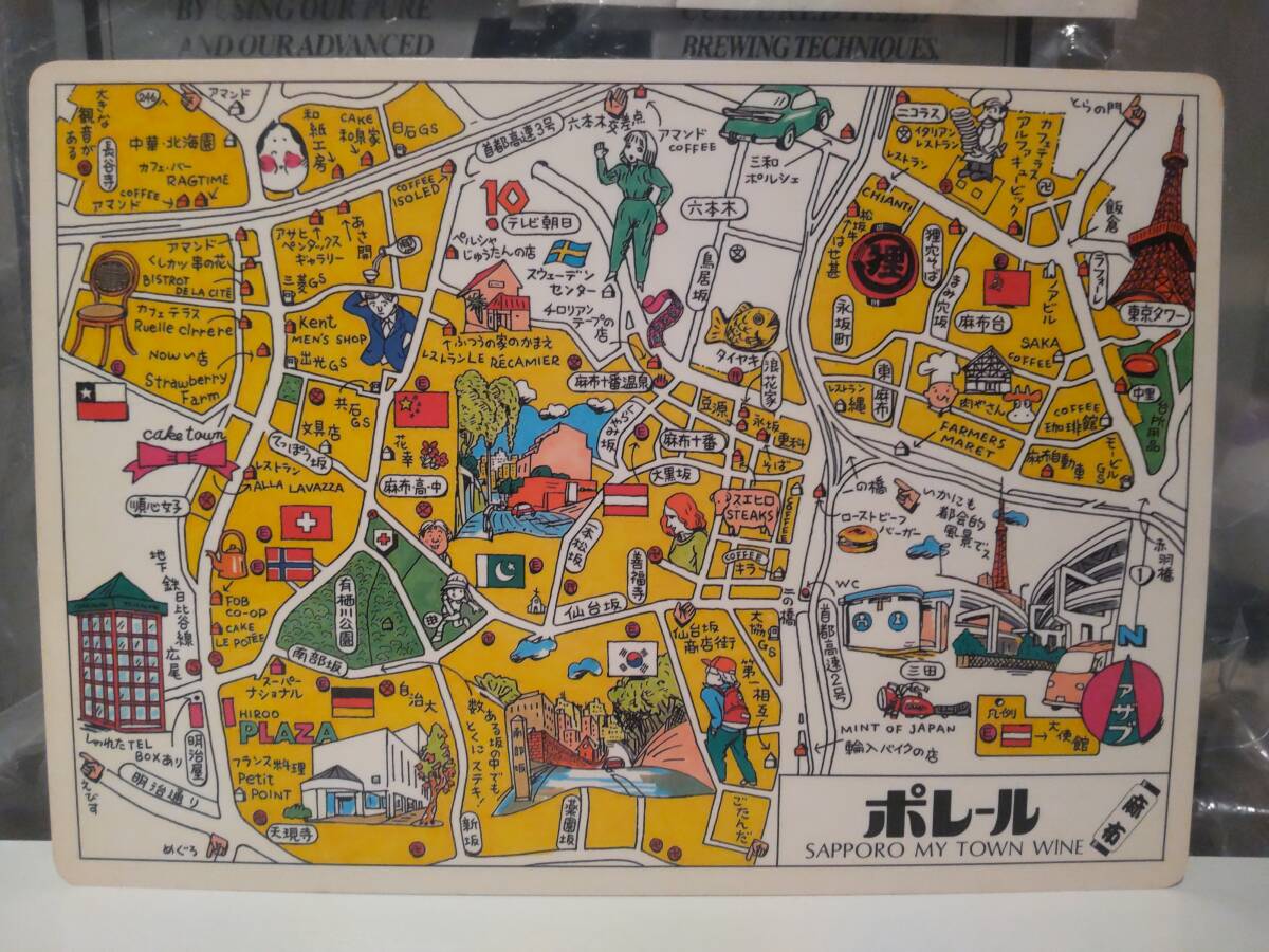 廃版★非売品★昭和レトロ★80年代★当時物 JOQR ラジオ 文化放送 ポレール 東京タワー 港区 六本木 麻布 観光マップ 下敷き★ディスコ