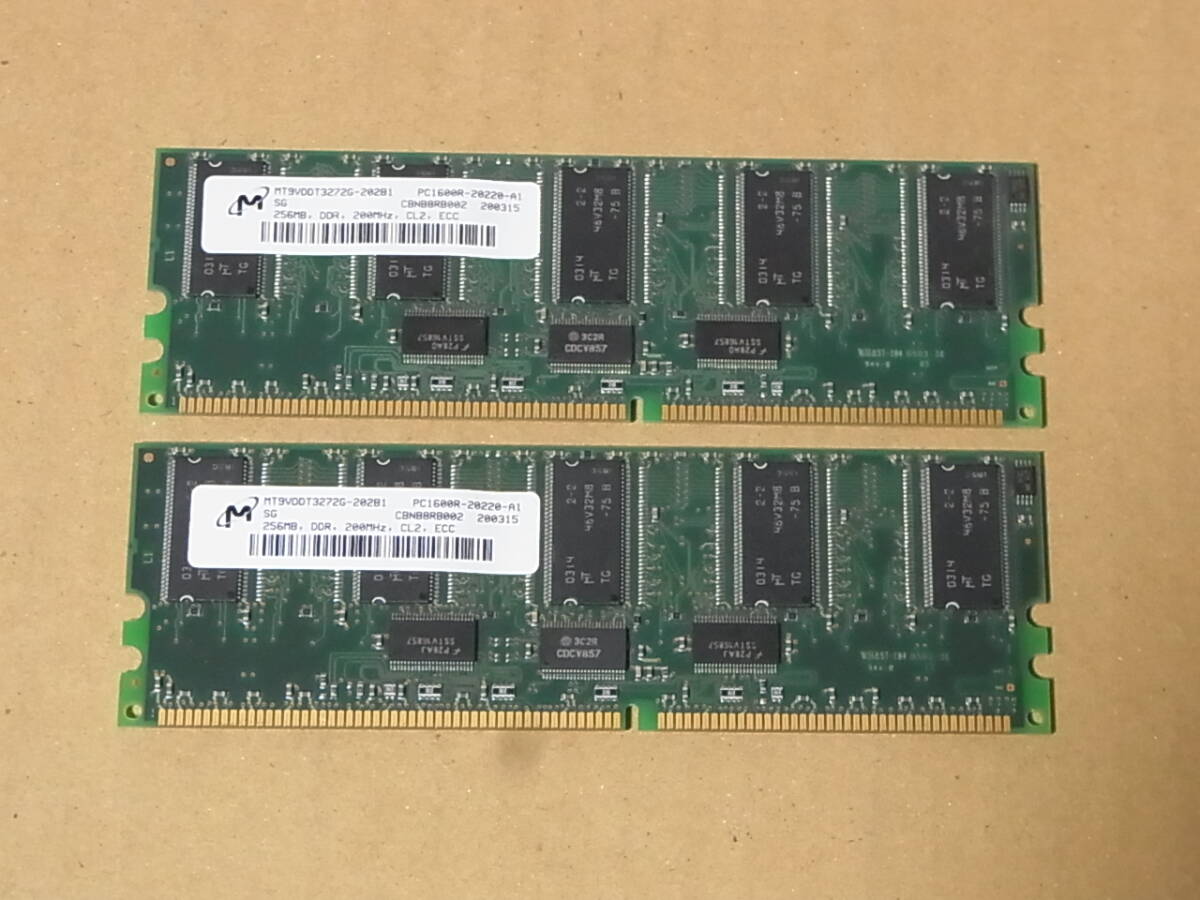 Micron PC1600R DDR 200MHz CL2 ECC Registered 256MBx2枚セット(合計512MB)です。