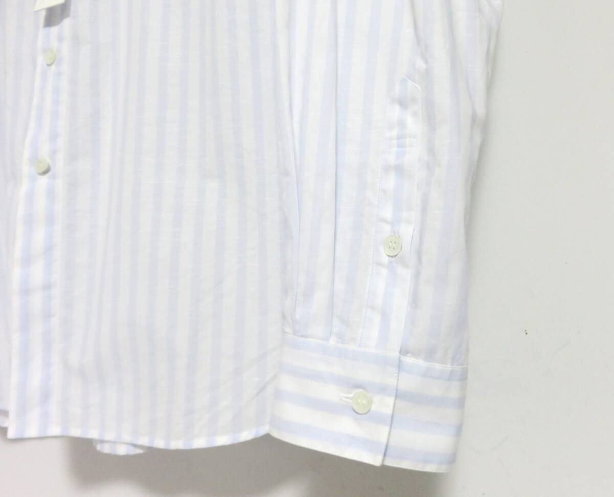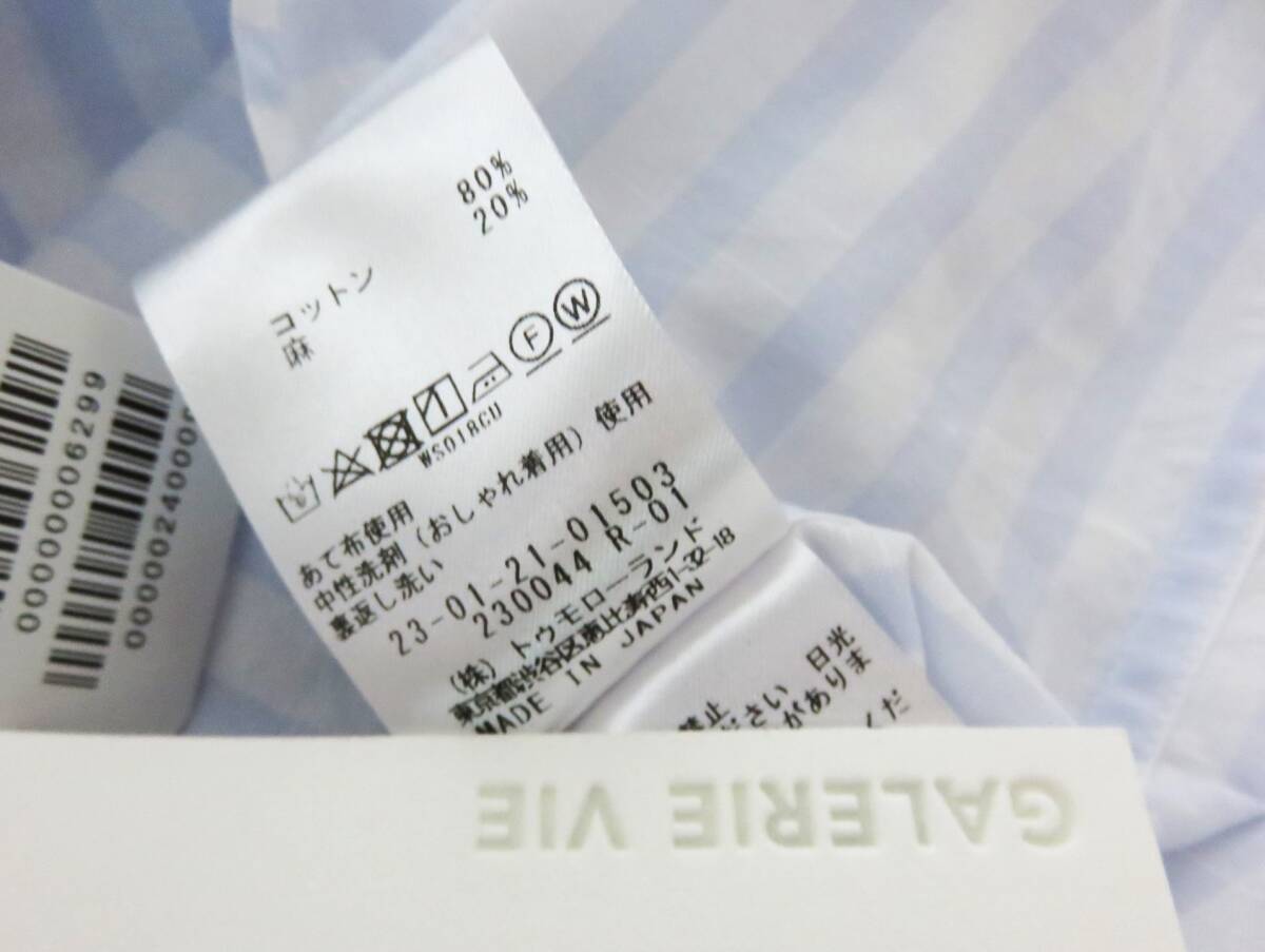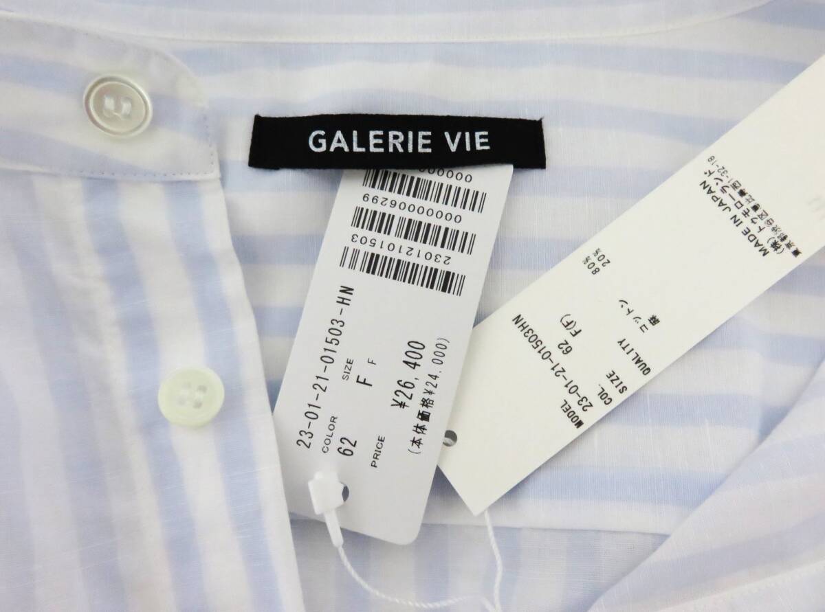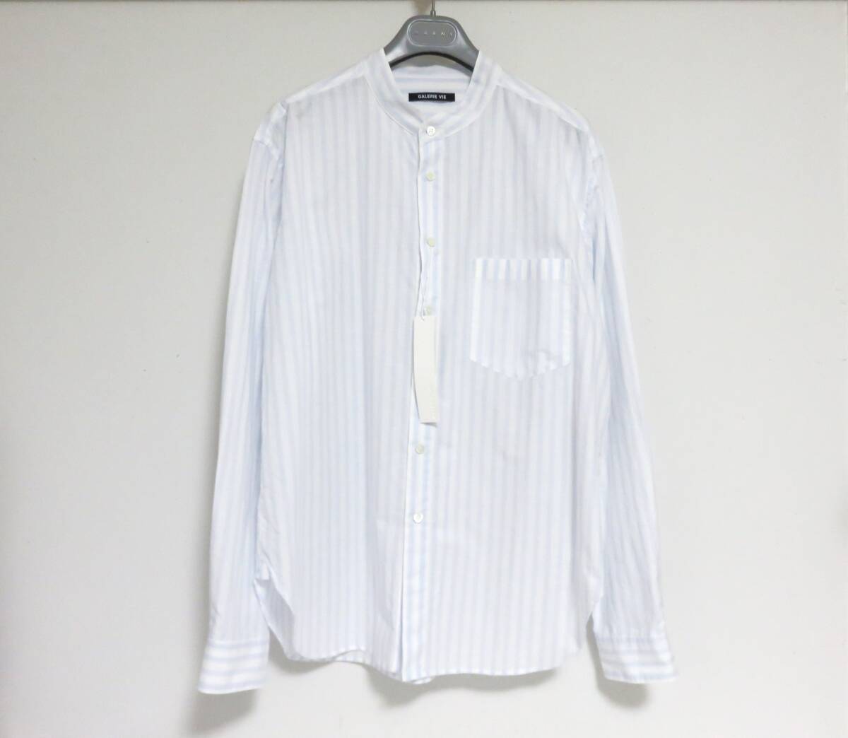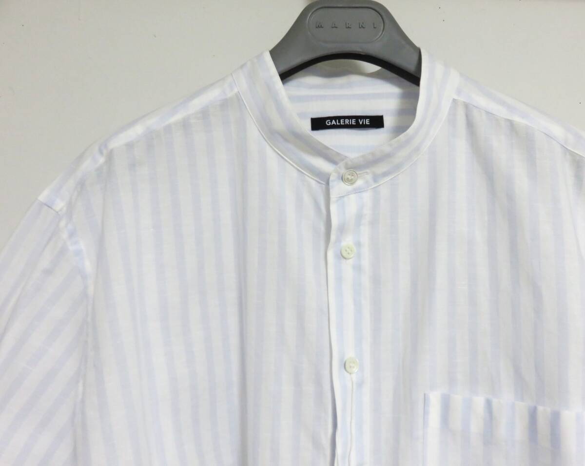 定価2.6万 新品 GALERIE VIE コットン リネン ストライプ バンドカラー 長袖 シャツ ホワイト 日本製 ギャルリー ヴィー 綿 麻