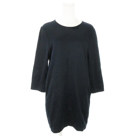 ロペ ROPE ワンピース ミニ 七分袖 コットン ストレッチ ハリ感 Vバック シンプル 38 紺 ネイビー /AO2 レディース