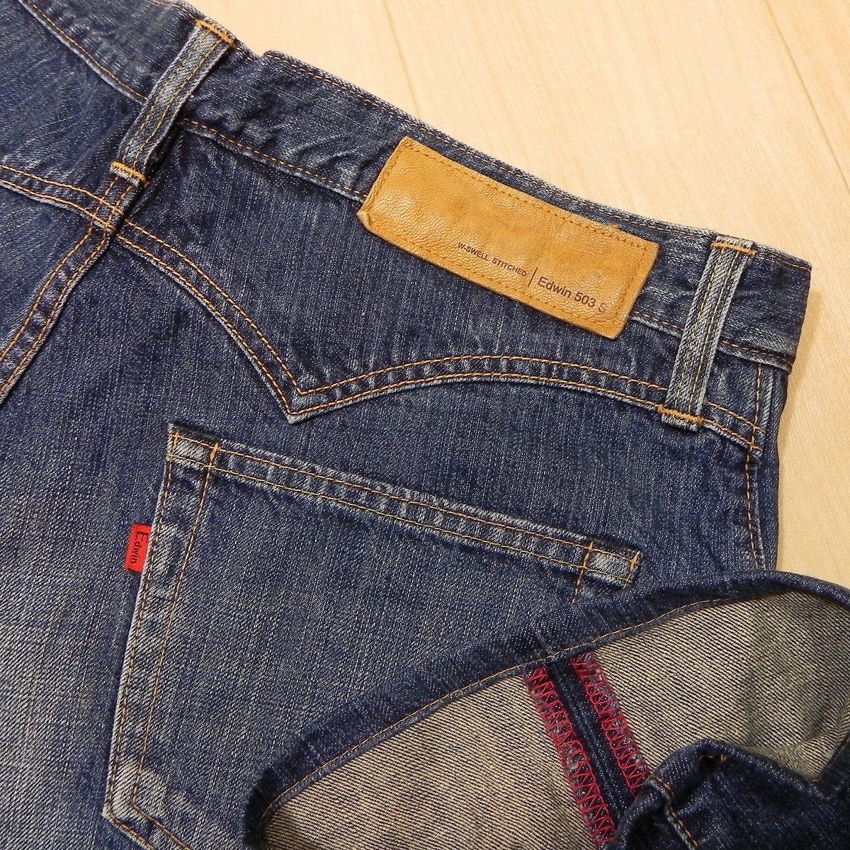 =350★ 日本製 EDWIN エドウイン 503S3 ★ ユーズド加工 デニムパンツ ストレート ジーンズ W33 古着 即決 ★