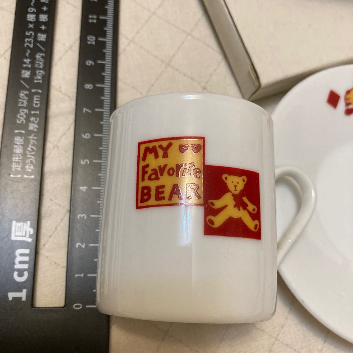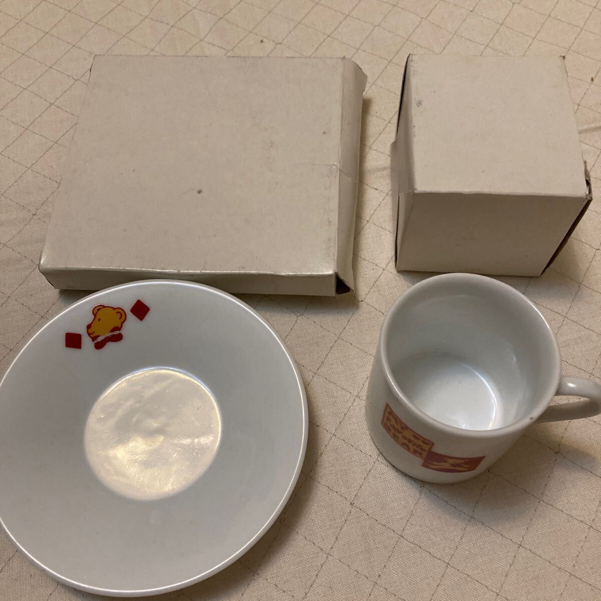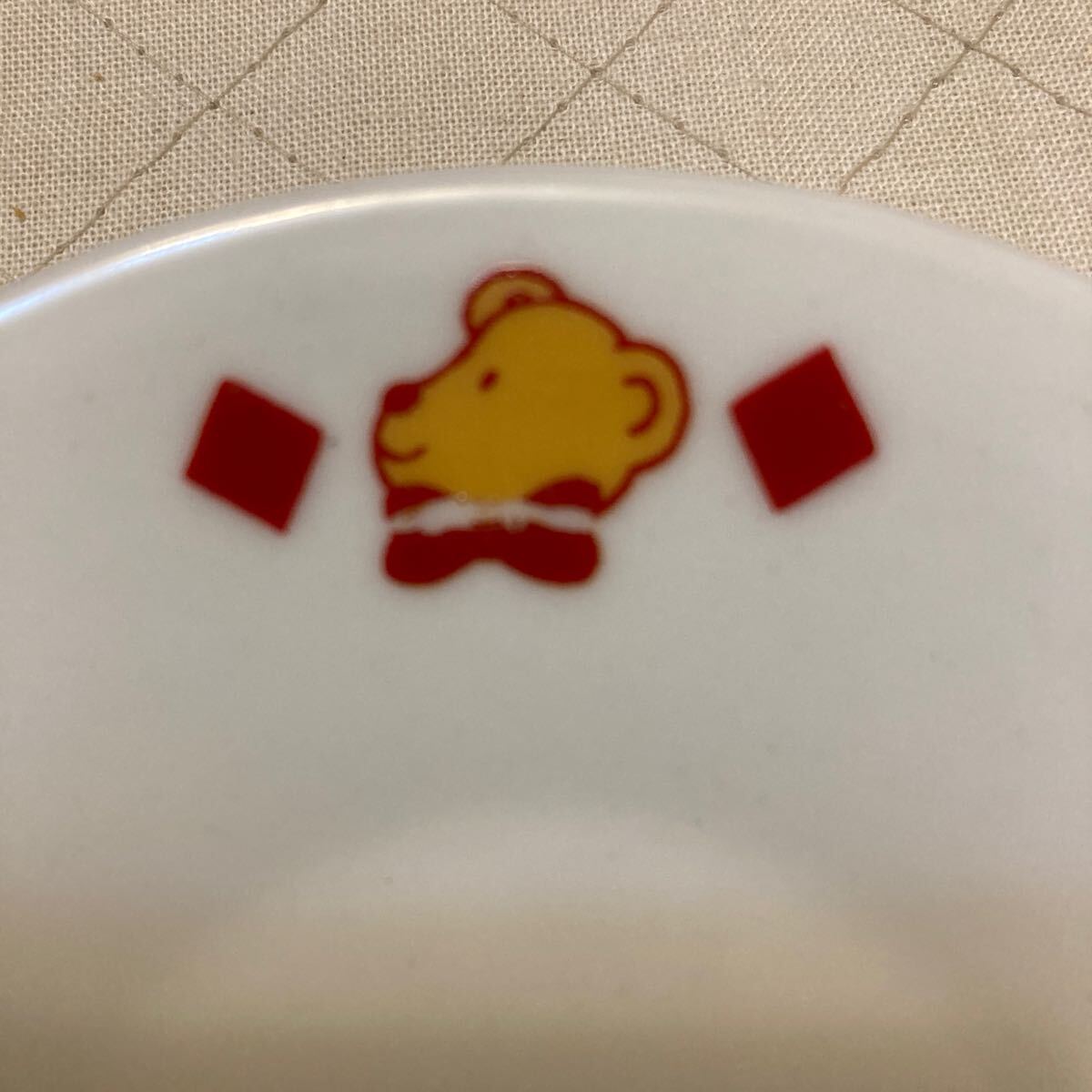 ソーサーの方のプリント、くまの蝶ネクタイにミスプリントあります。
