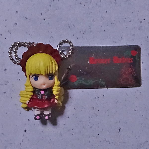 ☆ユージン(現:タカラトミーアーツ)の「ローゼンメイデン トロイメント リトルフィギュアマスコットPart1.5」の第五ドール真紅です。3センチ半くらいの大きさです。 |