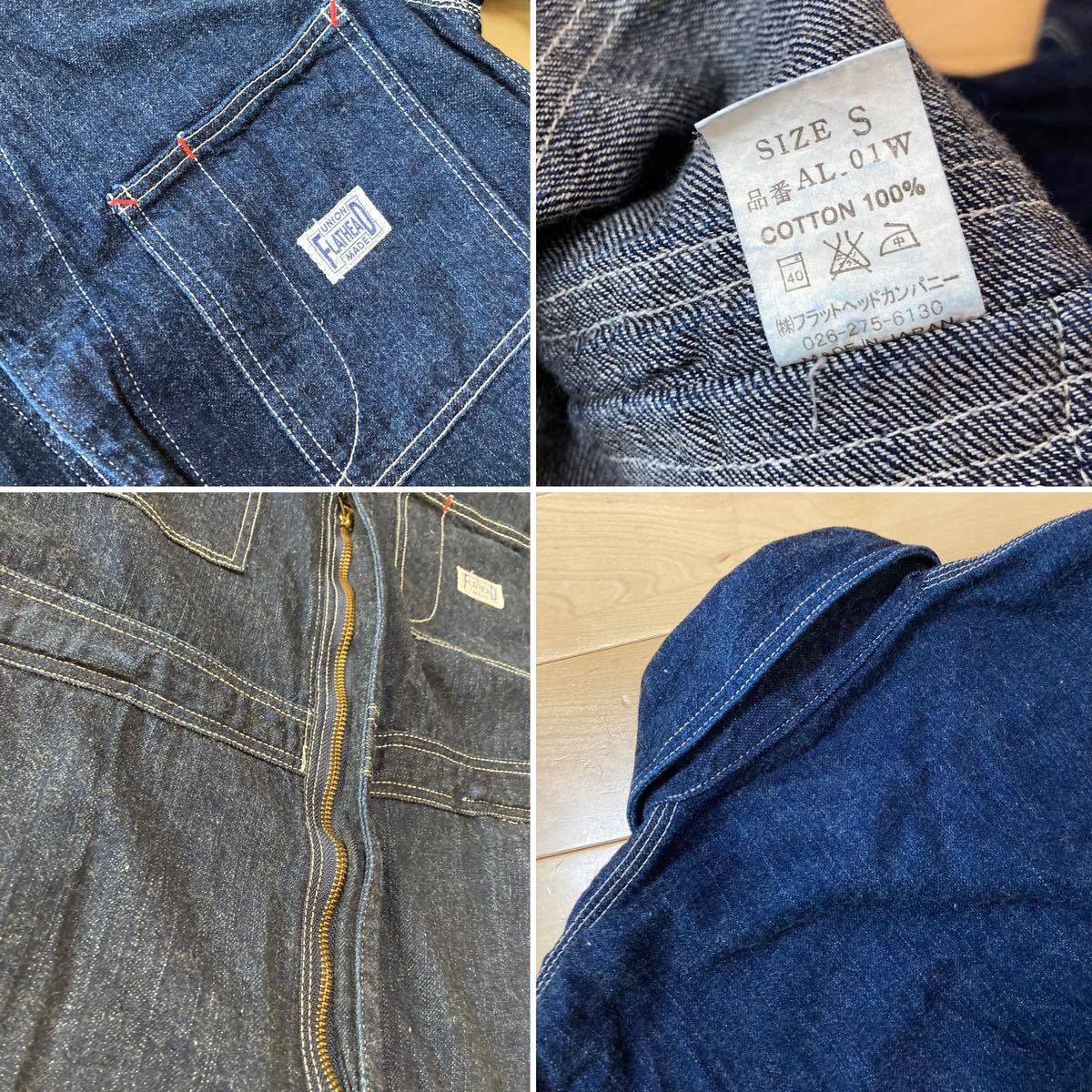 濃紺☆[THE FLAT HEAD] AL-01W 12oz インディゴデニムオールインワン つなぎ S 日本製 フラットヘッド