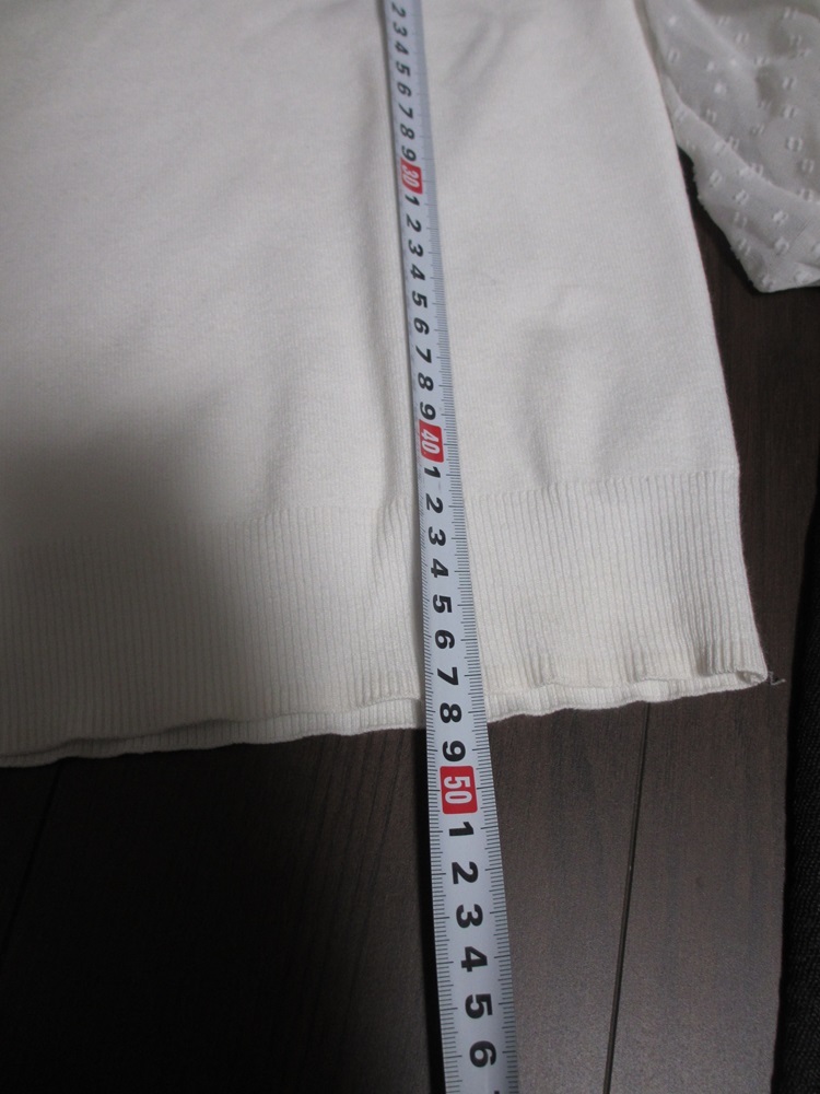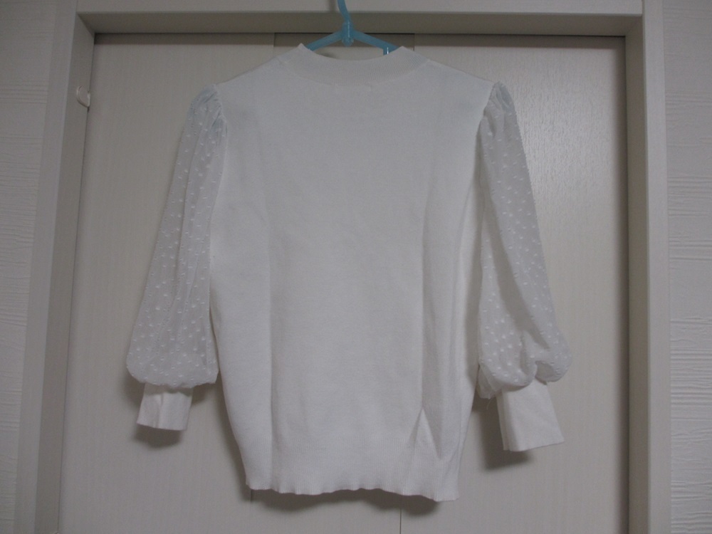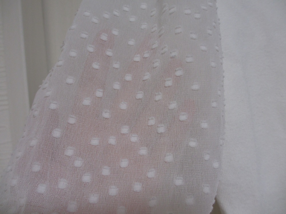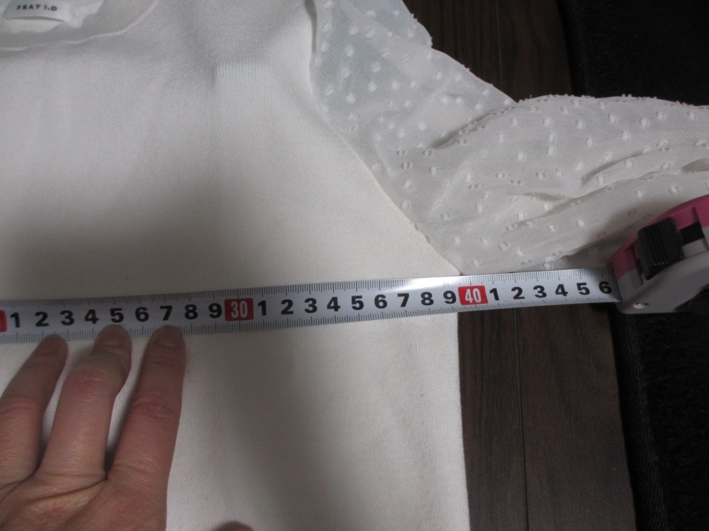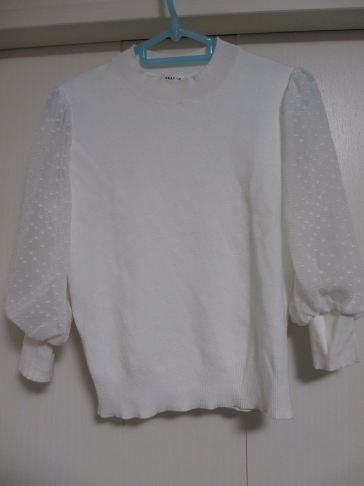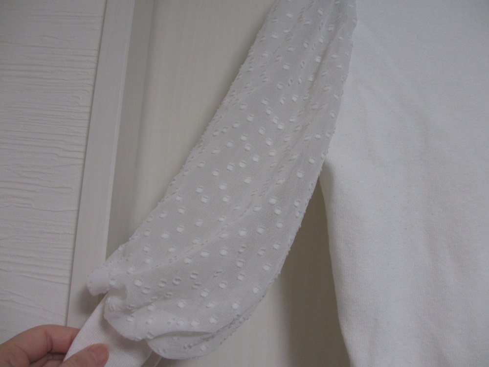 FRAY I.D フライアイディーハイネック異素材切り替えカットソー袖シフォンドット柄スリムデザインS~小さめMサイズ相当7分袖