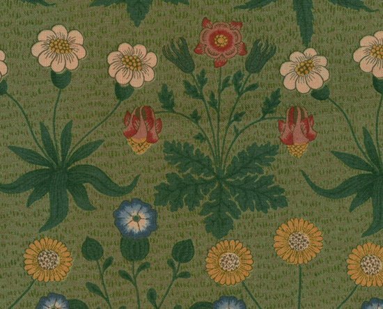 デイジ(Daisy)は1862年にウィリアムモリスが「トレリス(Trellis)」、「フルーツ(Fruits)」と並んで初めてデザインした3点の壁紙の中の1つです。デザイン後、「モリス・マーシャル・ワークナー商会」を設立して試作的に印刷していたが、1864年から本格的に制作されるようになりました。