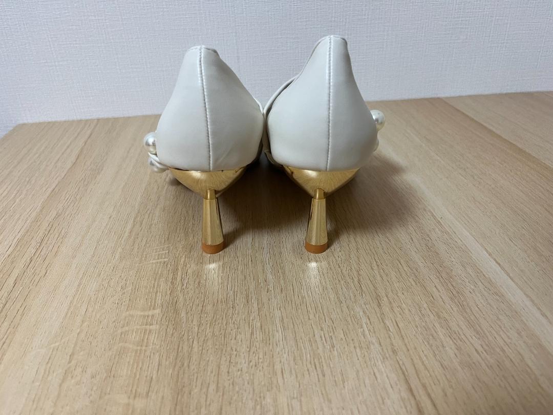 華やかなオーラをまとったパールパンプス。足元をセンシュアルに、美しく彩ります。しなやかな曲線が美しく映える、ゴールドカラーのヒールが印象的で。 大人の女性の毎日を華やかに彩ってくれる一足です。