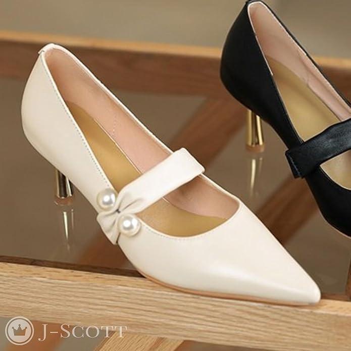 [J-Scott] [ジェイスコット] パールデザインパンプス 6cmヒール 脱げにくいベルト付き 歩きやすい 低反発クッション レディース JS49