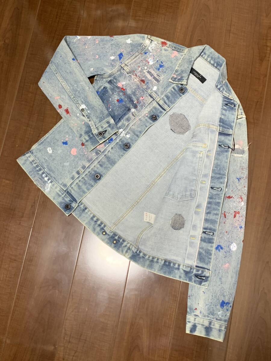 未使用☆[OVERDESIGN] 定価50,600 2ND DENIM JACKET PAINT ペイント加工 インディゴデニムジャケット M 日本製 オーバーデザイン