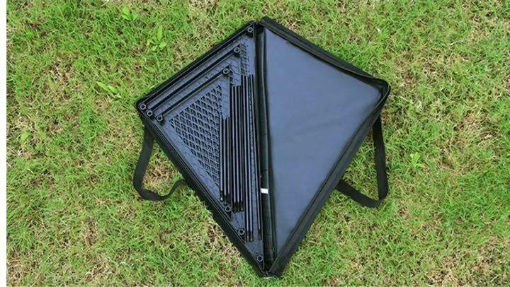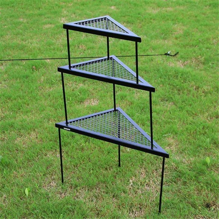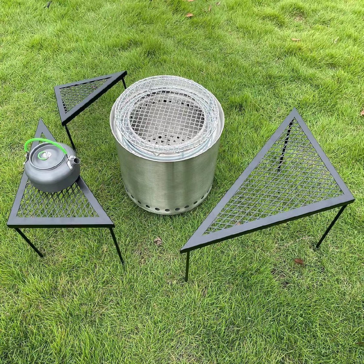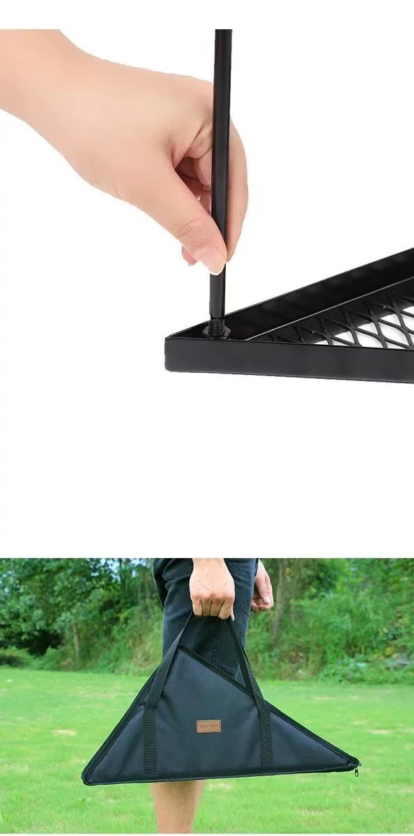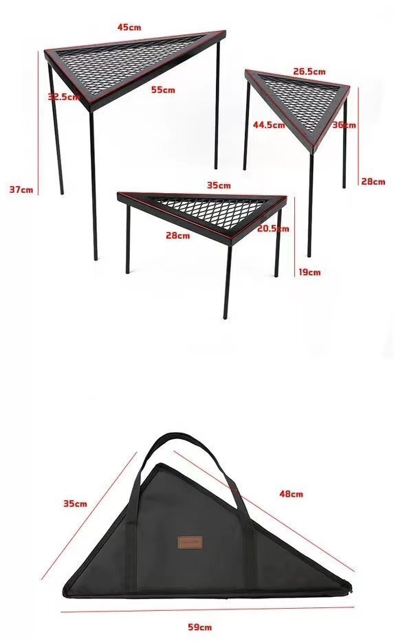 OHJ1384☆アイアン 焚火ラック 焚き火ゴトク 三角形テーブル 五徳 キャンプ アウトドア 3点セット BBQ 収納ケース付 コンパクト