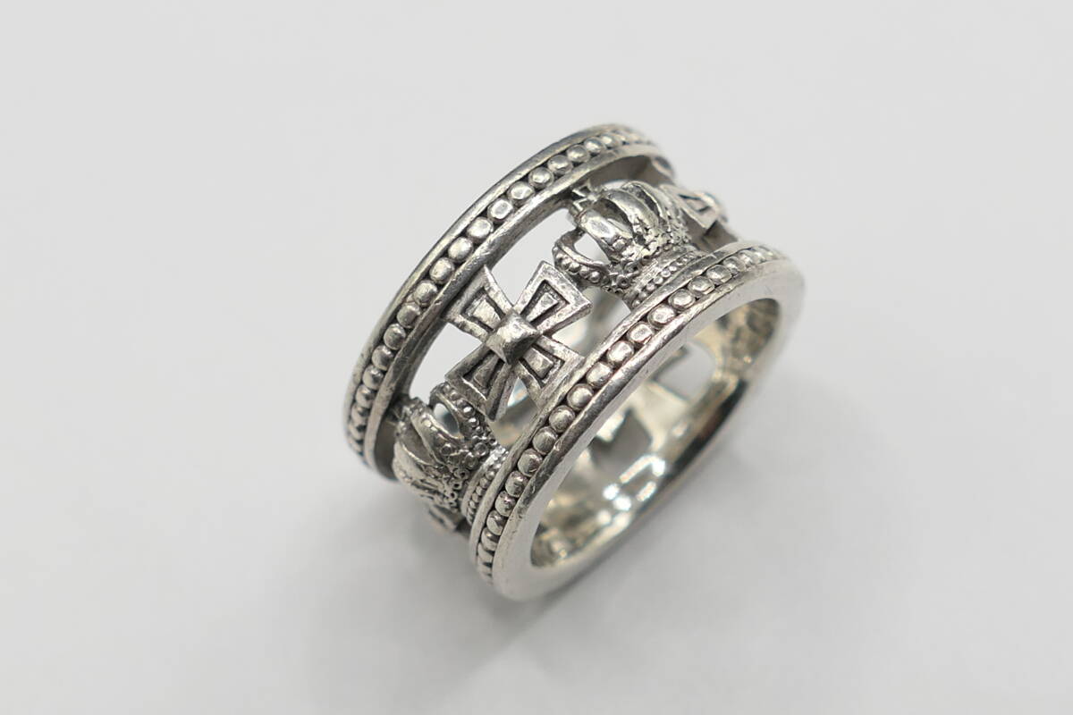 クロスとクラウンが交互に並んだ透かしデザインのロングセラー。