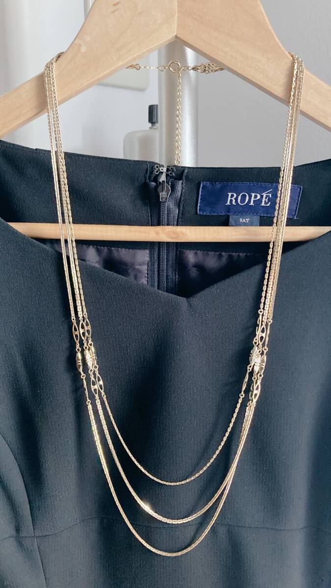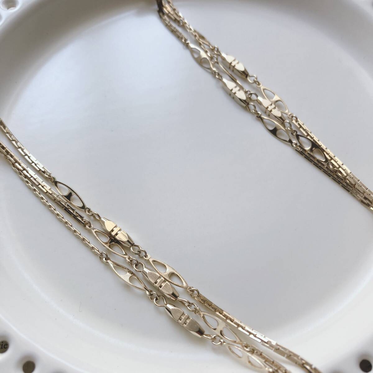 ネックレス 3連 ロング チェーン ゴールドカラー トリプル 美品☆Vintage jewelry accessories japan k0651