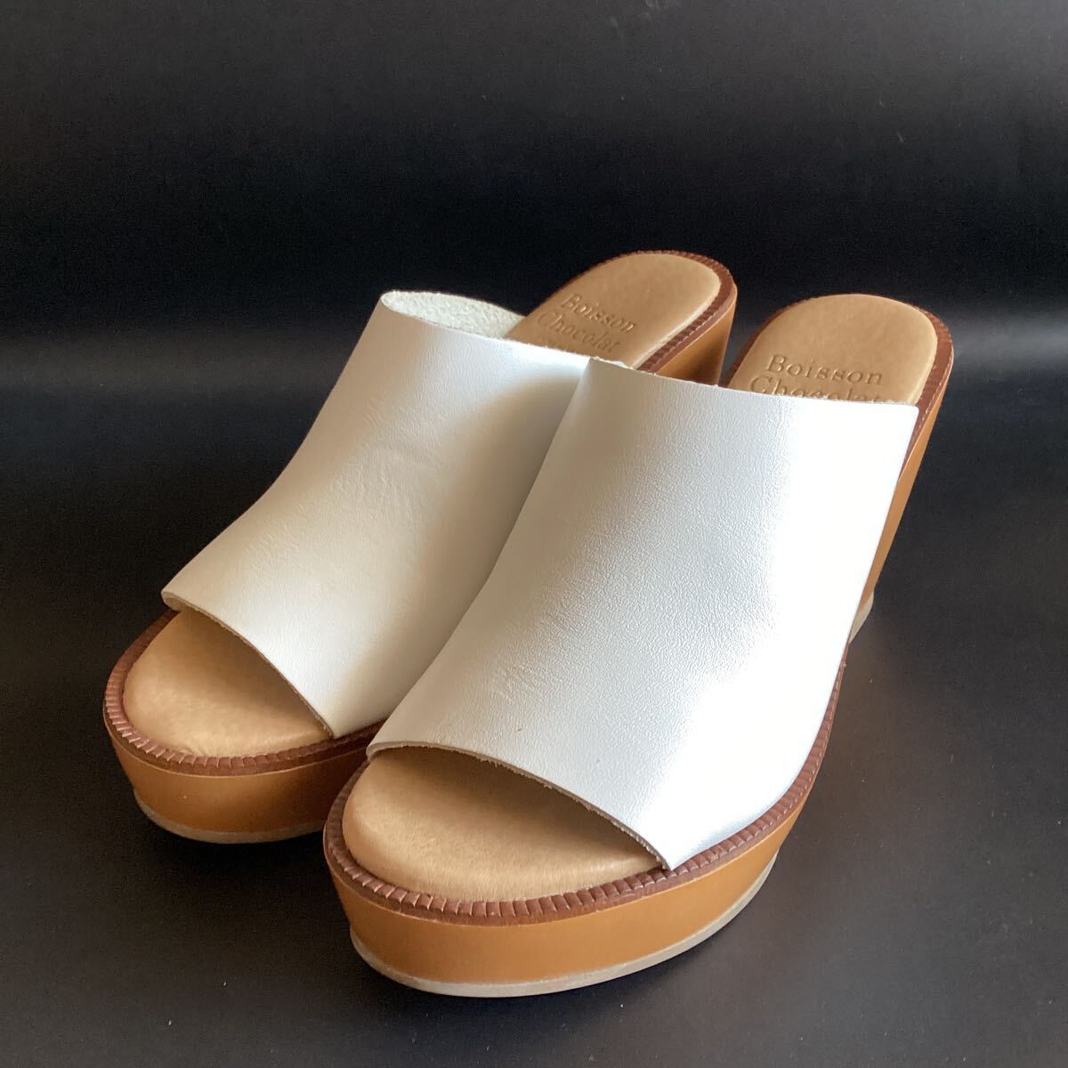 商品説明 | Boisson Chocolat ウェッジソールサンダル カラー ホワイト系 サイズ 38 (ソール高 前2.7㎝ 後ろ9.1㎝) 素材 アッパーレザー 実物を撮影しております。 ご近所を1度歩いた程度でです。日本サイズ(㎝)表記はありません。当方は通常24㎝を履くことが多いです。こちらのブランドのサイズ感がわかる方でお願い致します。 自宅保管になりますので神経質な方、完璧を求める方はご遠慮ください。 |