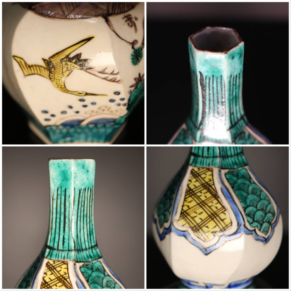 古九谷 / 徳利 / 一対 / 九谷焼 / 六角瓢徳利 / 松鶴文 / 色絵 / 酒器 / 酒注 / 酒瓶 / 陶器 / 焼き物 / 時代物 / 骨董 / 古美術