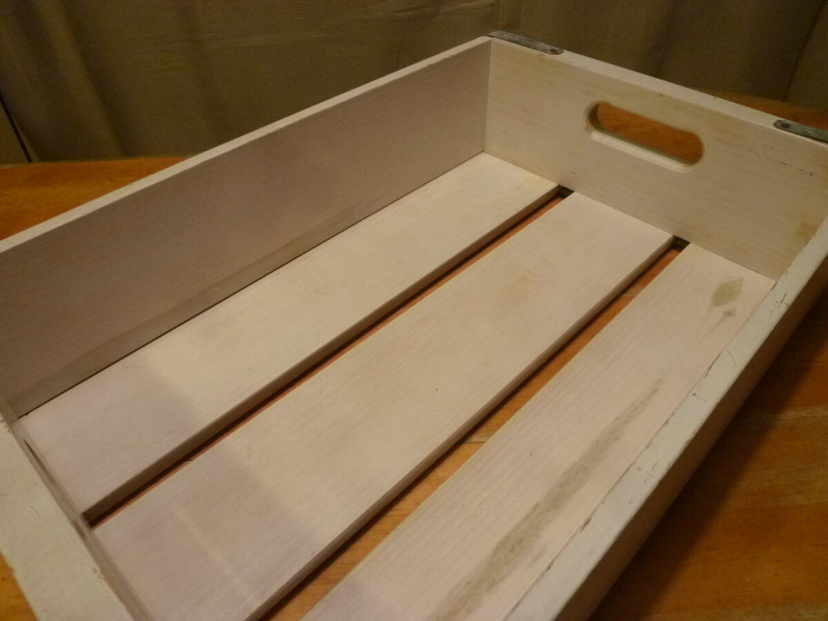 こちらは頑丈な構造の収納箱の様で、厚みのある持ち手側には底を回して金属が上部の一部まであり、ずっしりと安定感があります。